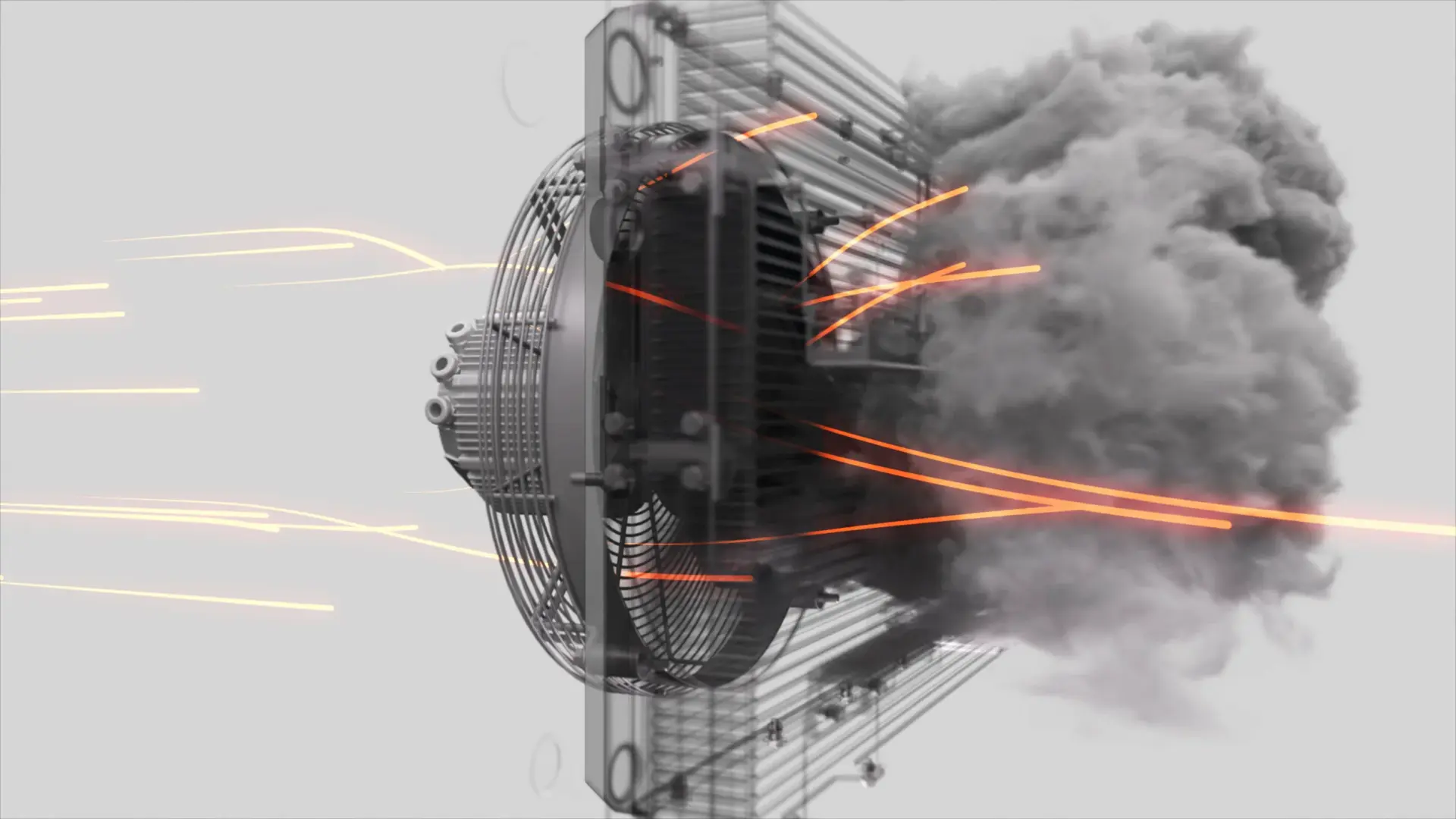The Fully Bidirectional Fan will be the first fan system for electric and hydraulic drives that achieves identical air performance with maximum efficiency in both flow directions. The inertia-driven blade adjustment ensures that the blades are always correctly aligned for highly efficient cooling and powerful cleaning. The lightweight design reduces inertia, while the aerodynamically optimized blade profiles ensure consistently high air performance. At the same time, the fan combines cleaning and cooling mode in one system, achieving maximum efficiency with minimum energy consumption.